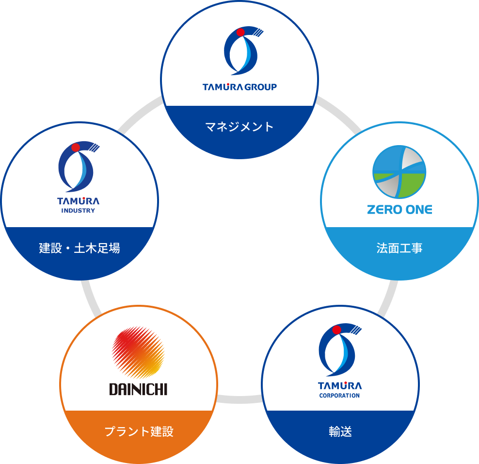 多種多様な場面に応じてグループの総合力を活かしあらゆるニーズに対応、私たちタムラコーポレーションの輸送業務だけではなく、田村工業の建築・土木足場、そしてプラント建設のダイニチといったグループ会社の総合力も活かしてあらゆるニーズにお応えします。