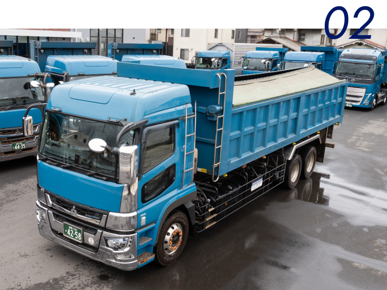 荷台を油圧装置で持ち上げ、土砂・砕石・廃材などの荷を自動的に下ろすことができるトラック